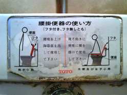 我が家は30数年前に和式トイレから洋式トイレに変わった。写真は我が家のトイレのタンクに今でも貼られている腰掛便器(洋式トイレ)の使い方のシール。今ではこんなシールは無用だが当時はまだ必要だった。