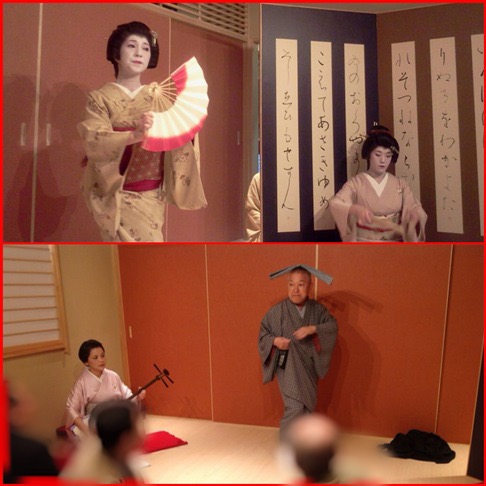 お店は言問通りから富士通りに入り最初の裏通りに面していて、玄関を入ると左側に10名ほど座れる長テーブル席が縦に置かれていて、そのテーブル席の先に12畳ほどのこじんまりとした座敷に10名が座れる席が用意されていて、わたしの席は芸者衆の舞がかぶりつきで見られる、相撲だったら砂かむりの正面タマリ席最前列と等しい座敷席だった。