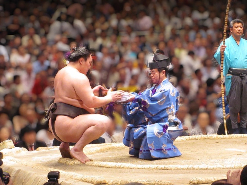 と、なると千秋楽で一番盛り上がりを見せてくれた人は、千秋楽結びの一番で49年間の行司人生に終止符を打つ、立行司の36代木村庄之助だったかもしれない。千秋楽結びの一番の取組み後の弓取り式を終え、花道を下がるときの拍手は盛大だった。わたしも拍手で見送った。庄之助さん、49年間お疲れ様でした。