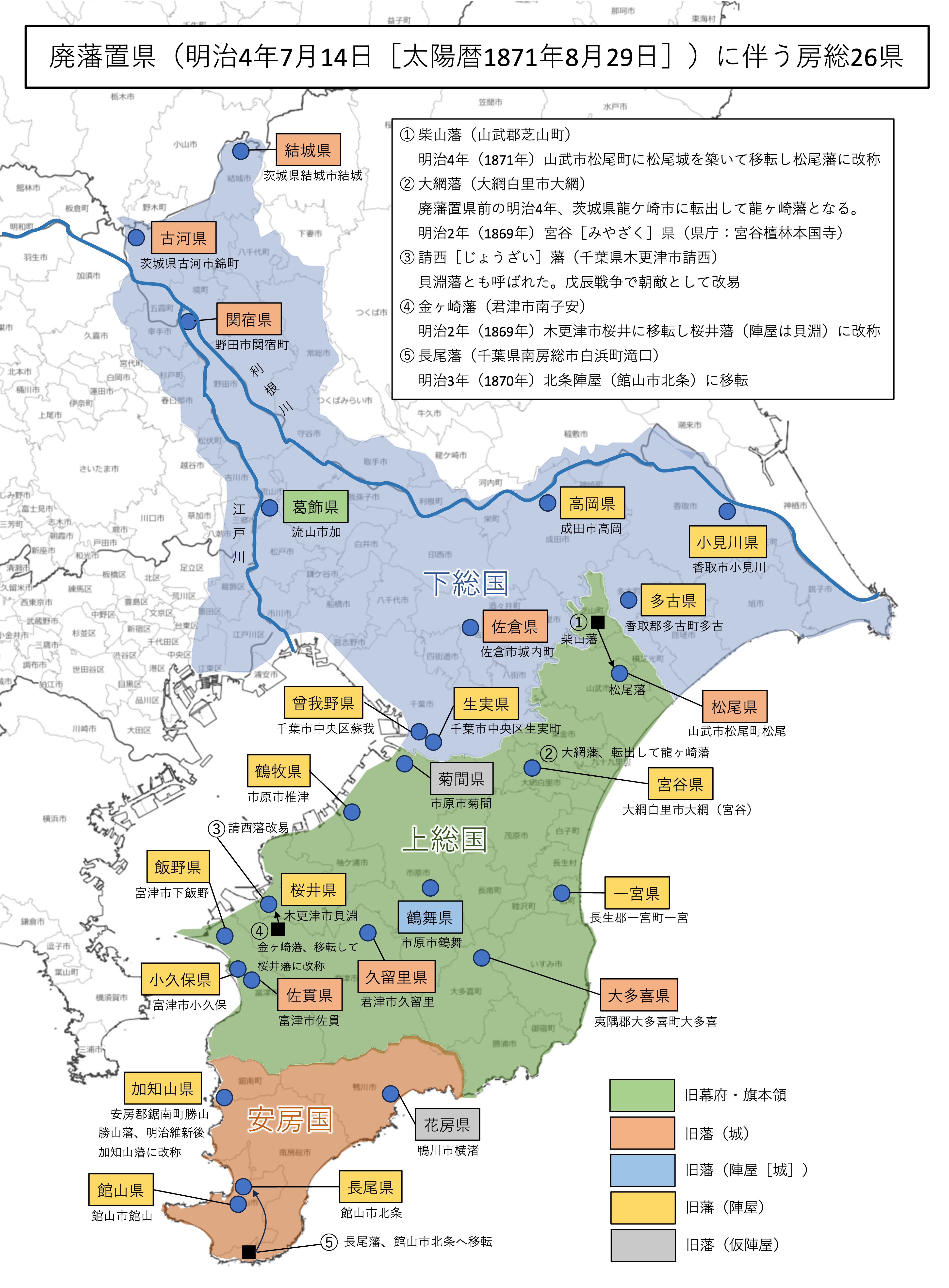 明治4年7月18日[太陽暦1871年8月29日]、廃藩置県に伴い房総26県になる。
