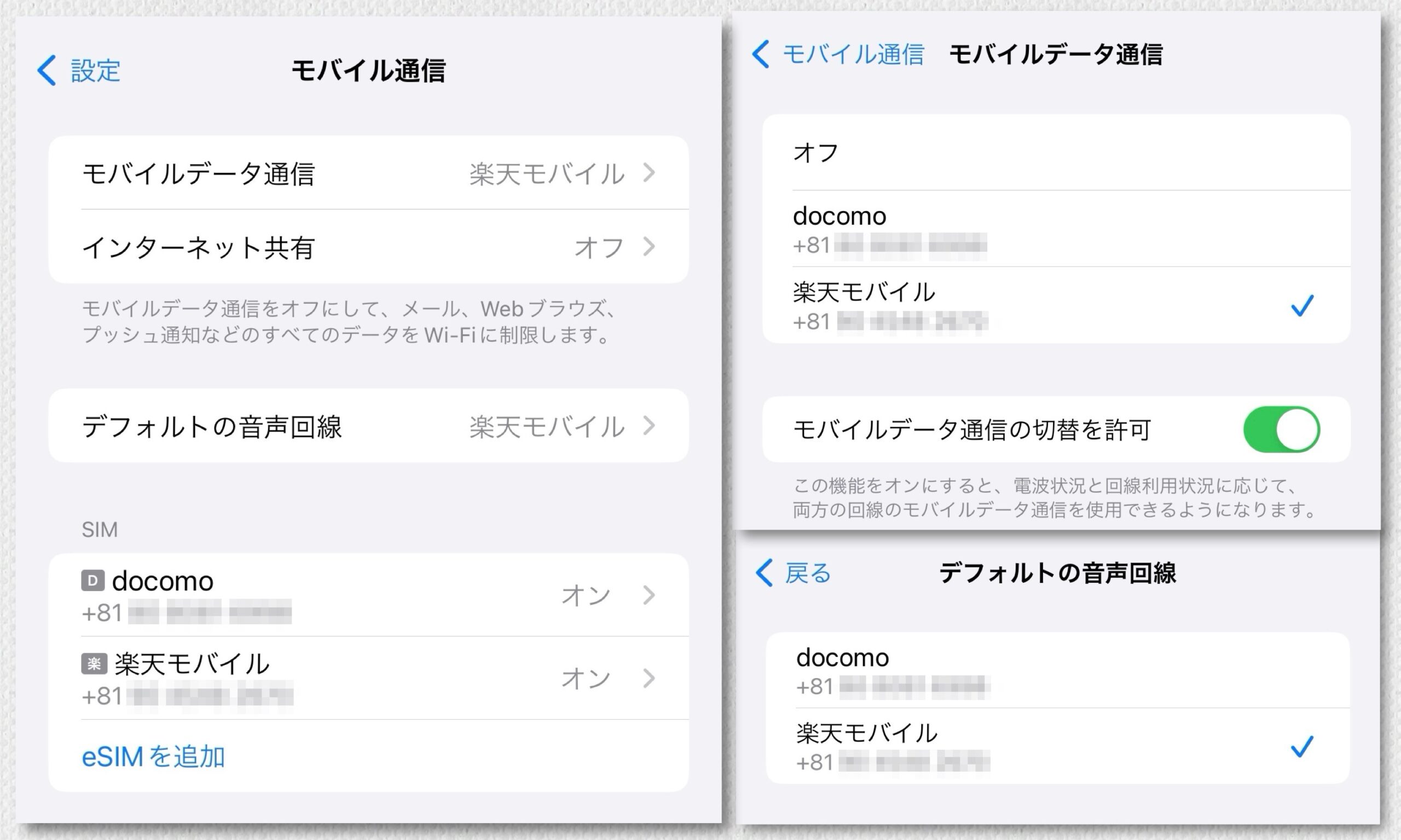⦁ 主回線:楽天モバイル(eSIM)