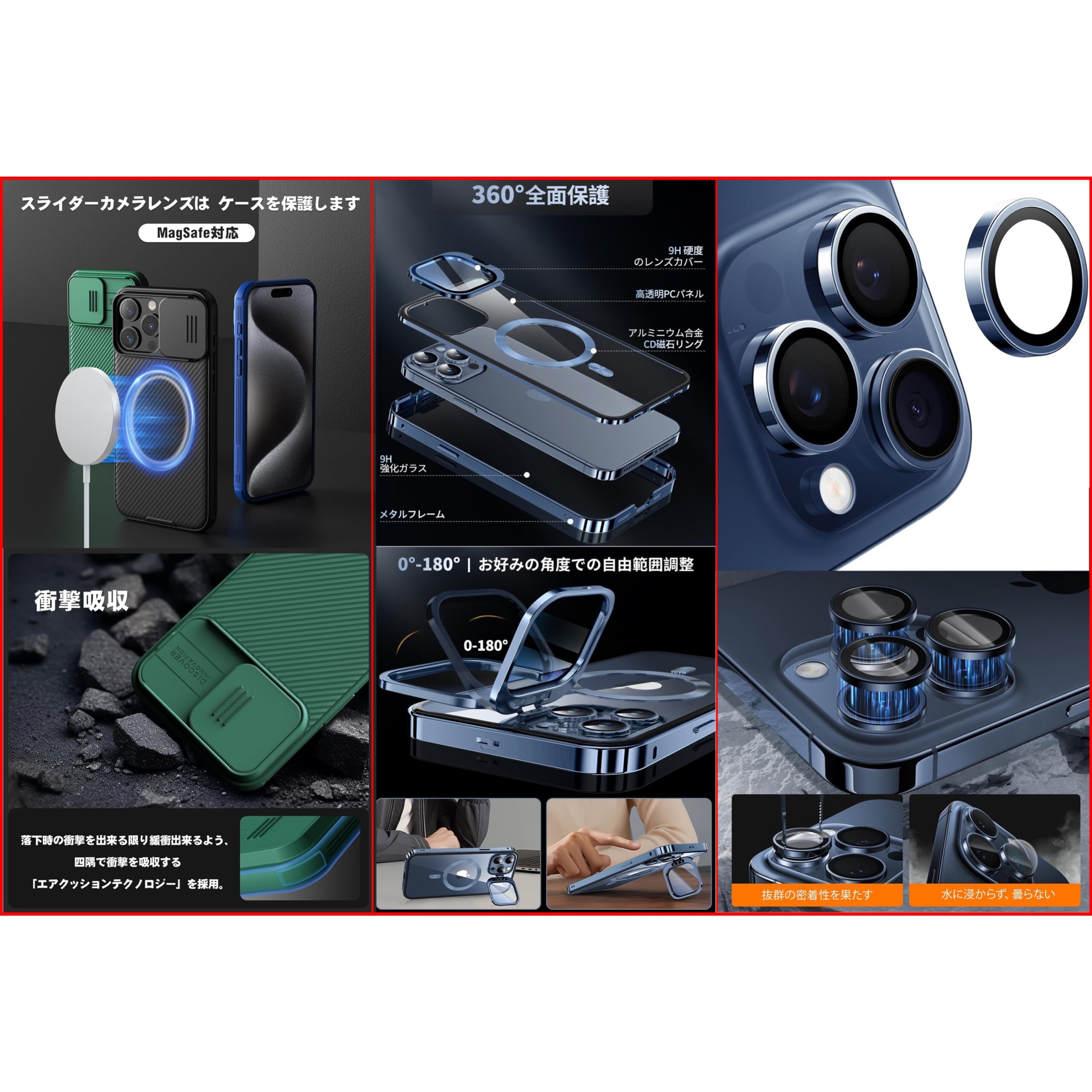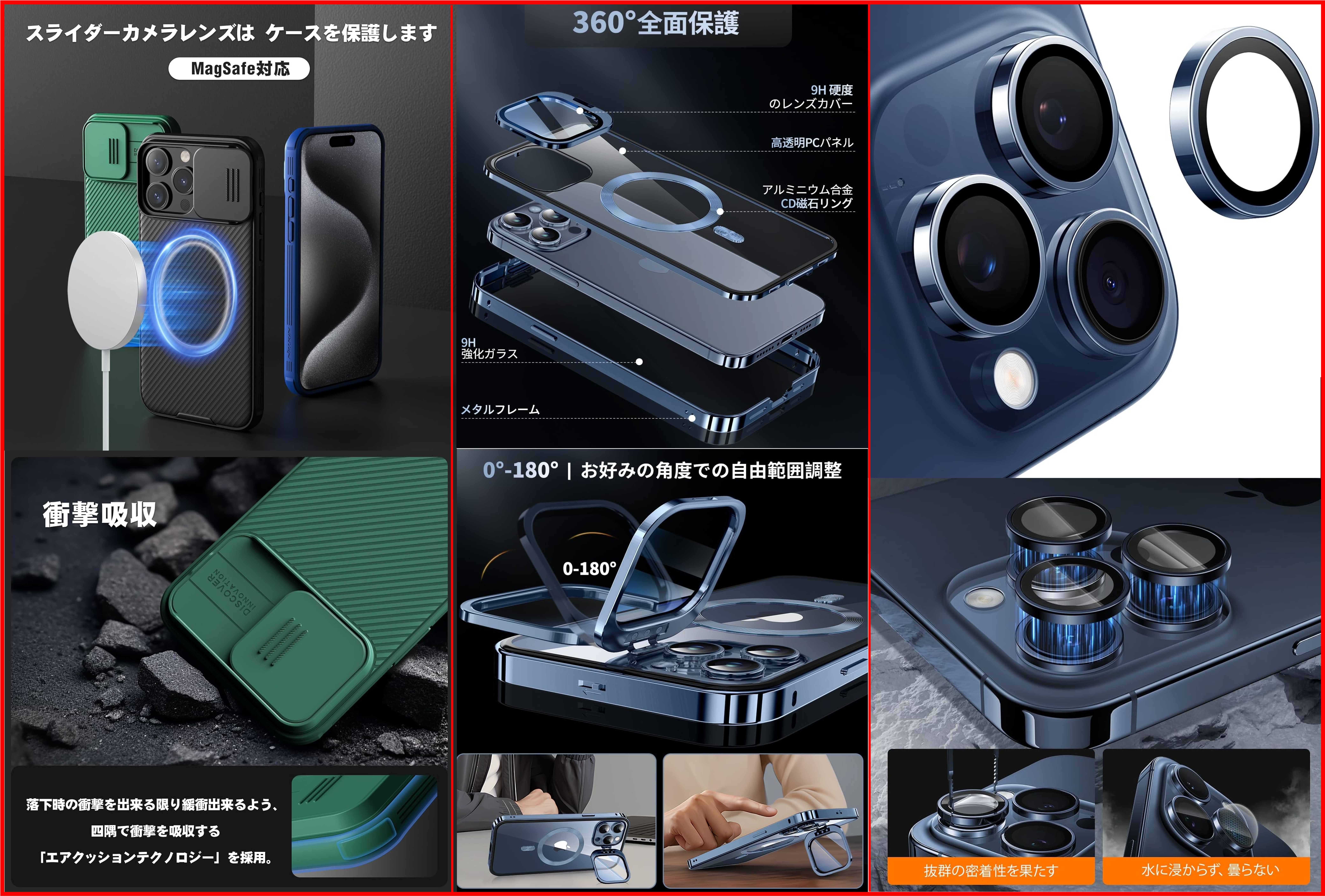 ただ、妻は背面が透明を希望したので、画像中央のカメラカバー付きロック式360℃全面保護ケース(以下、360℃保護ケース)を購入することになった。