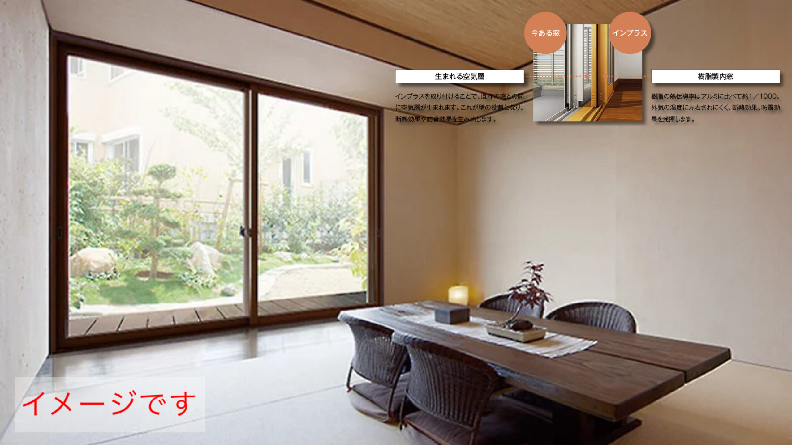 よって、防音対策としてインプラス(二重窓・二重サッシ)にした。既存窓は特注で大きい分、重厚なインプラス窓の開けはじめは、鍵が掛かっているのかと思うほど重いが、窓を閉めていると車の音は微かに聞こえる程度になり、あほバイクのけたたましいマフラー音も電車の音も気にならないほどに軽減された。