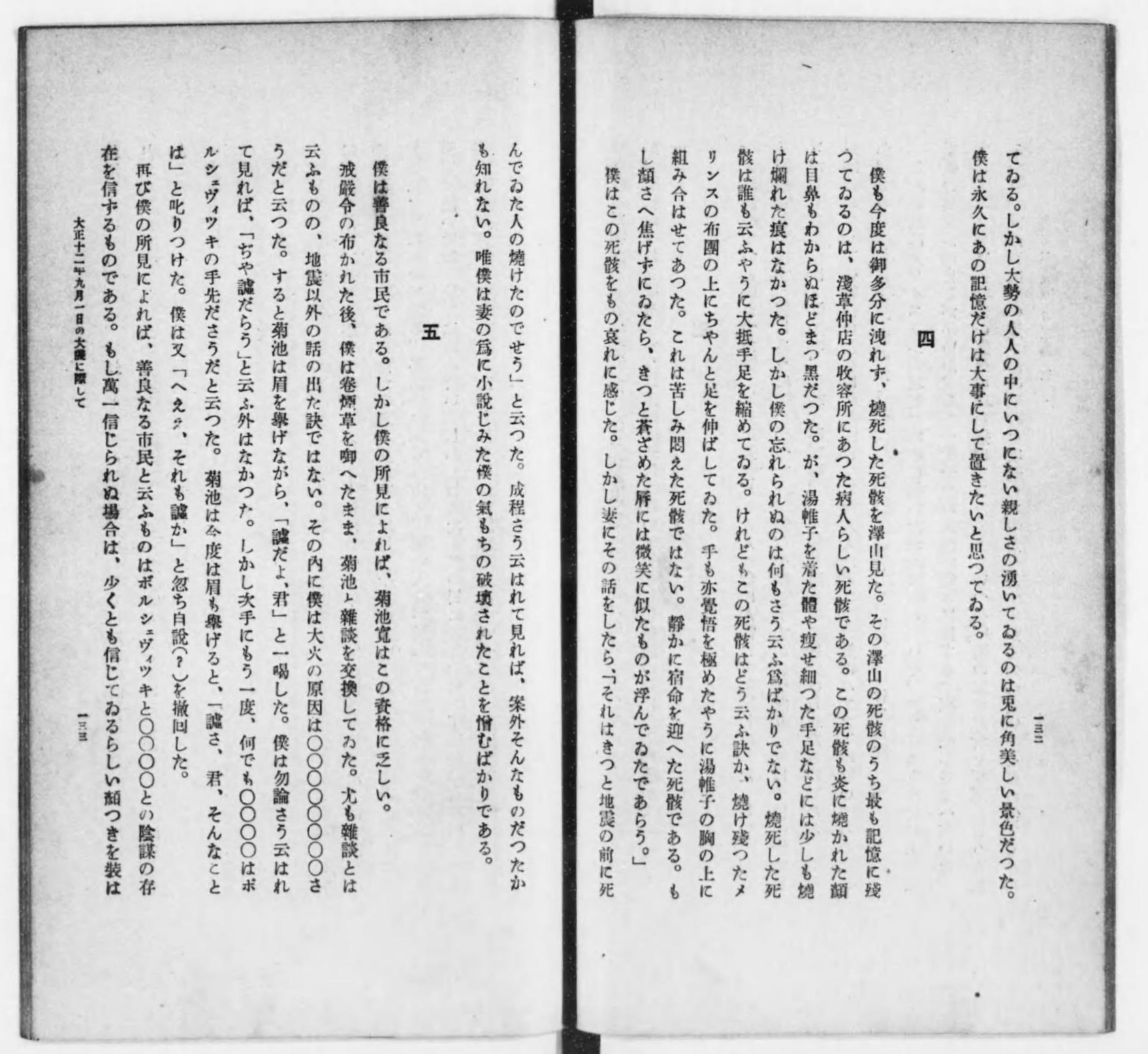手記「大正十二年九月一日の大震に際して」の伏せ字箇所
