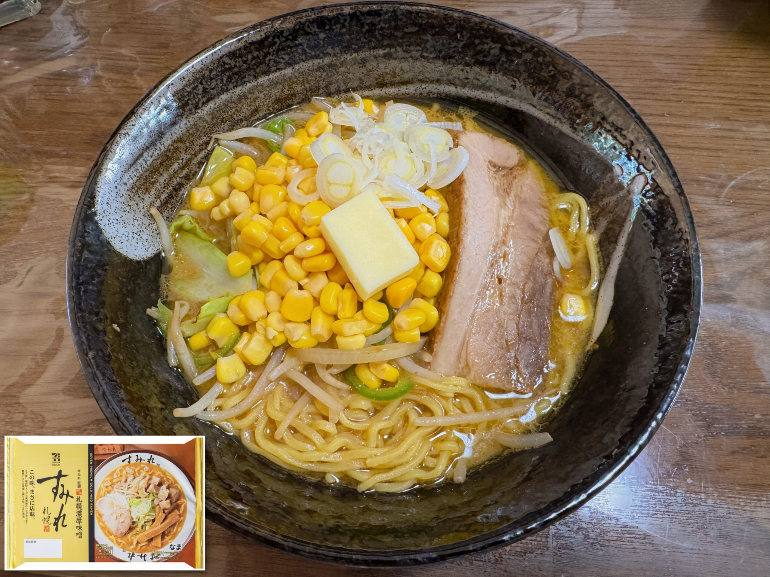一昨日の昼食がラーメンから牛丼どまん中に変更され、昨日は大相撲観戦だったので、今日の昼食に「すみれ監修札幌濃厚味噌ラーメン(7i)」を食べた。