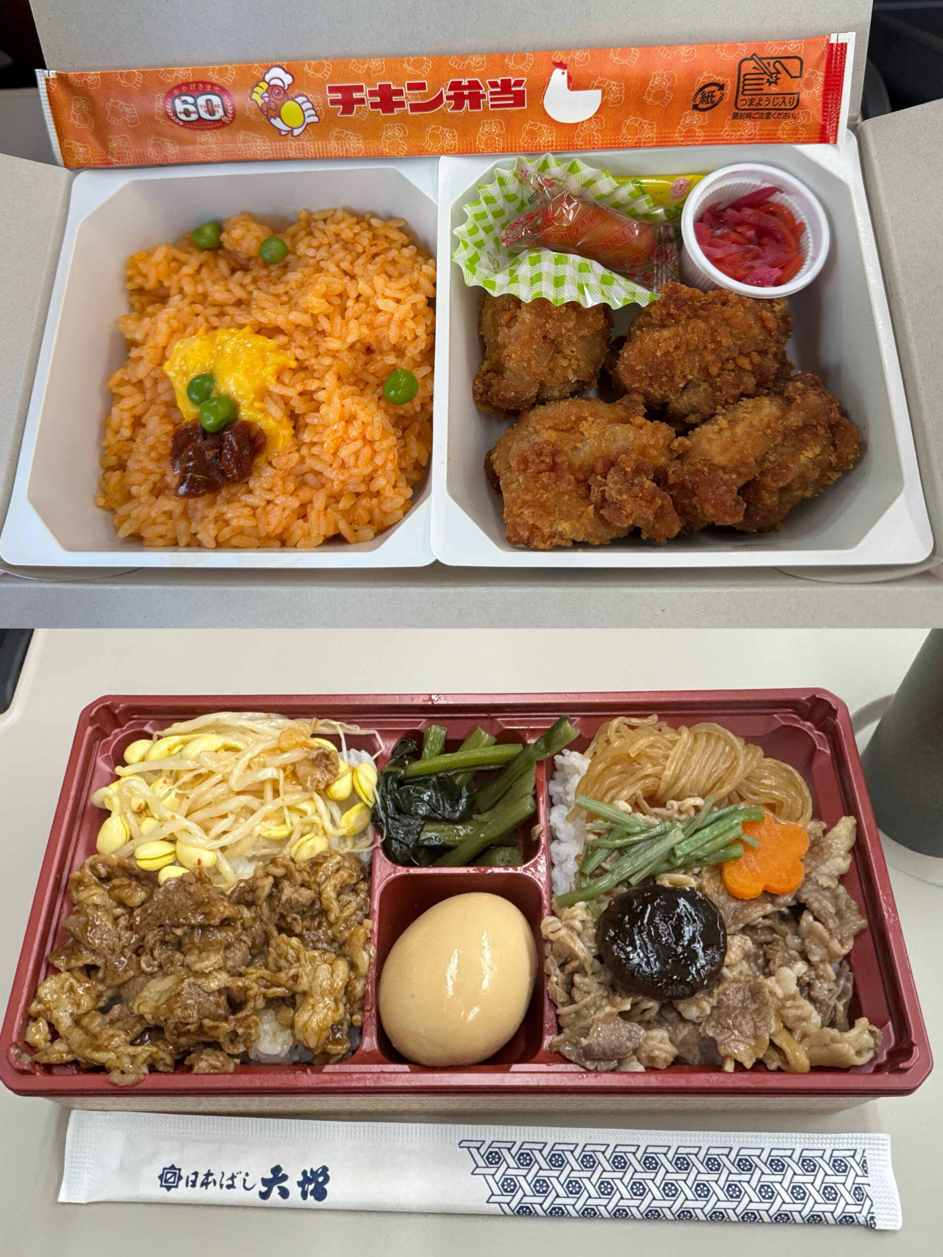 往きの新幹線東京駅ホームの駅弁屋で、妻は安定のチキン弁当、わたしは牛すきと焼肉弁当を購入した。先週京都の時はうなぎ弁当にしたら妻に叱られたが、今回は叱られることはなかった。
