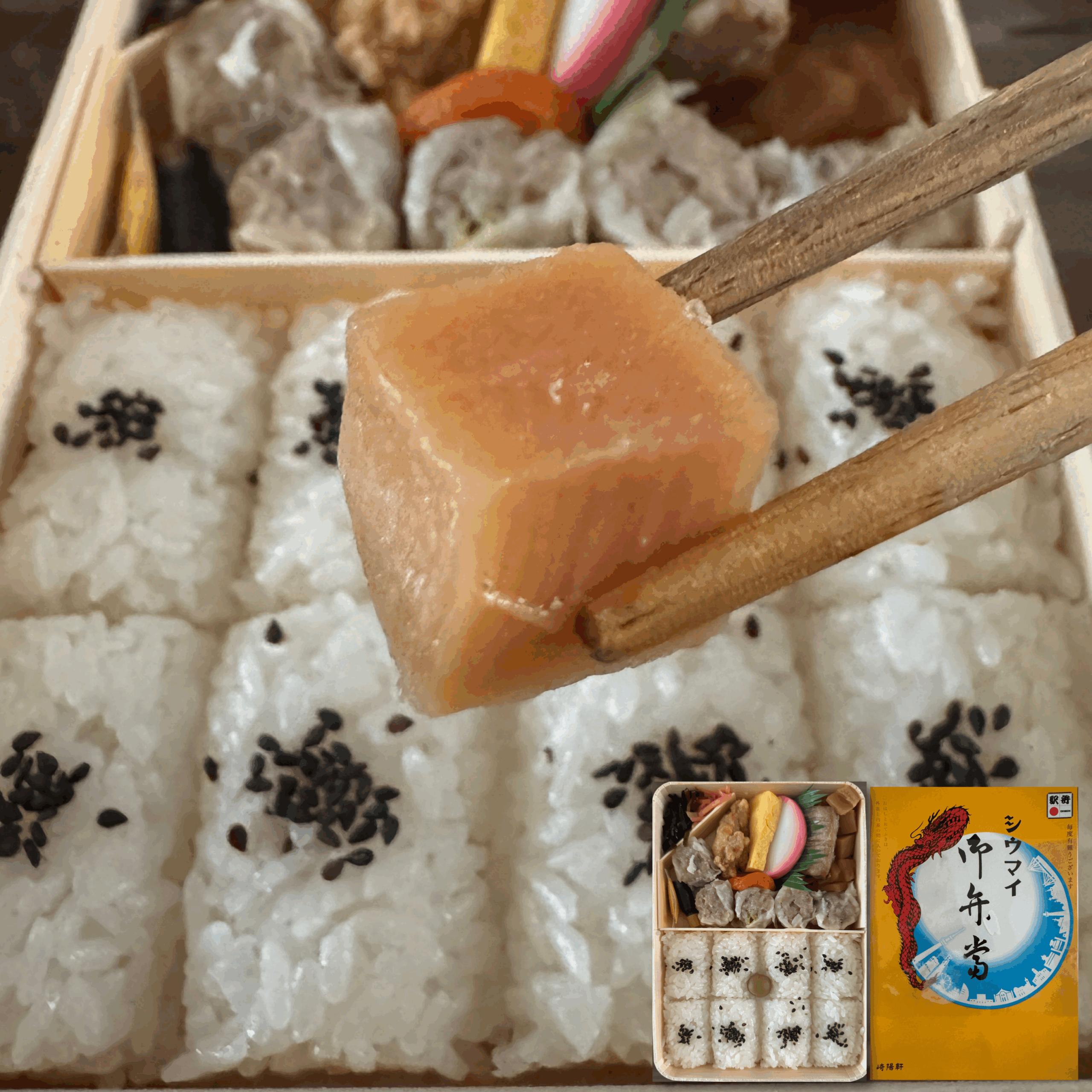 今日の昼食はシウマイ弁当。数日前の晩酌の肴に妻が作った筍のしぐれ煮が出た。